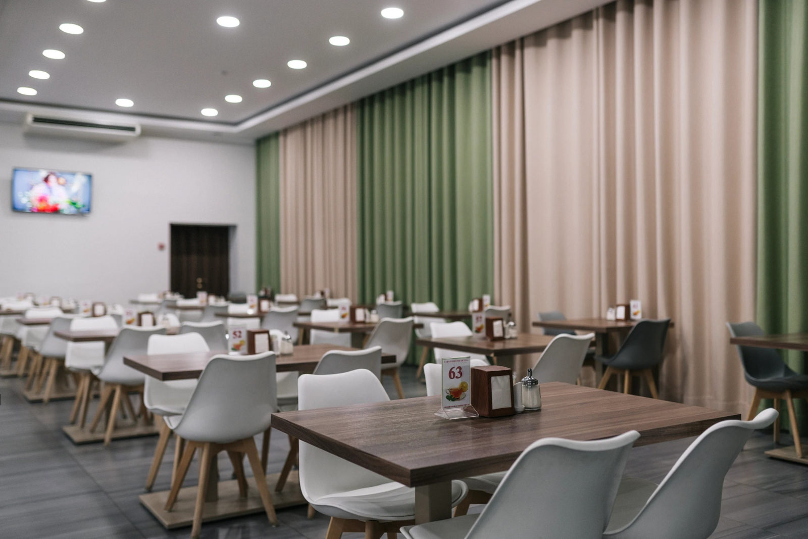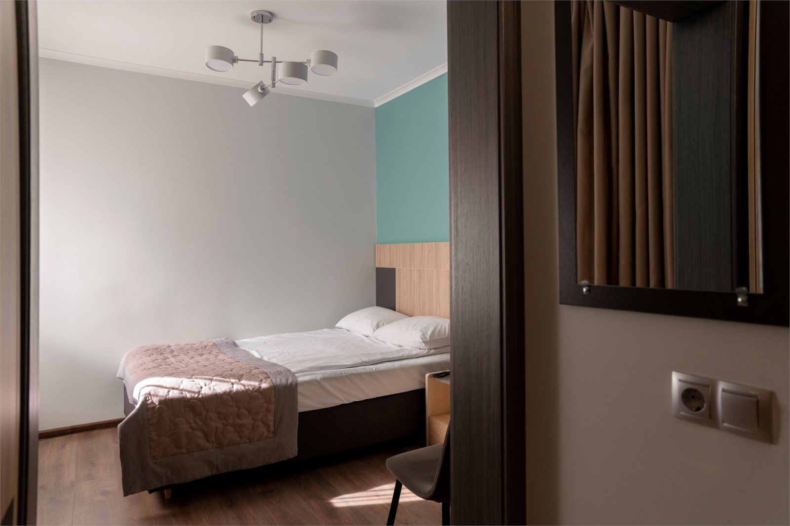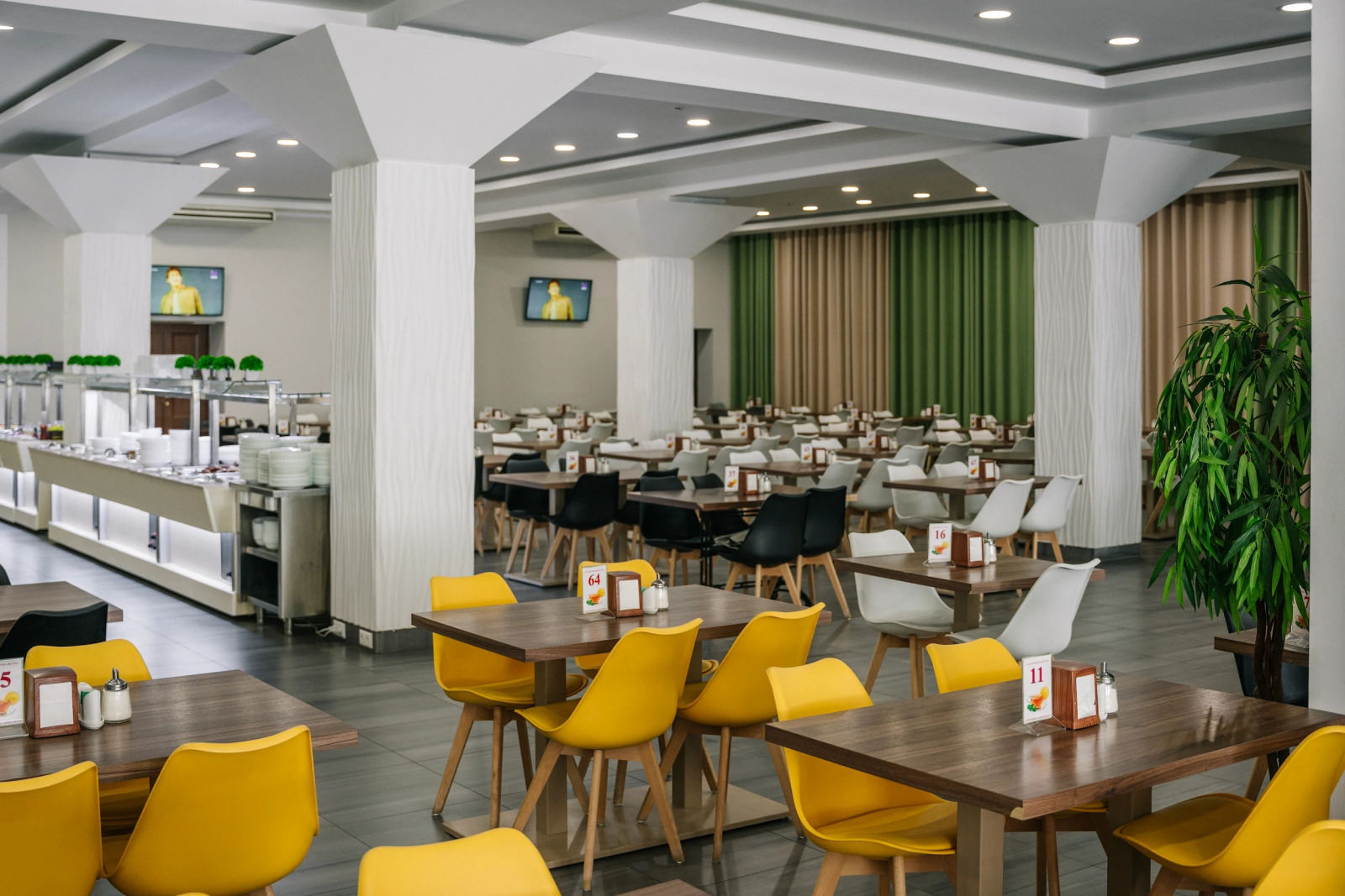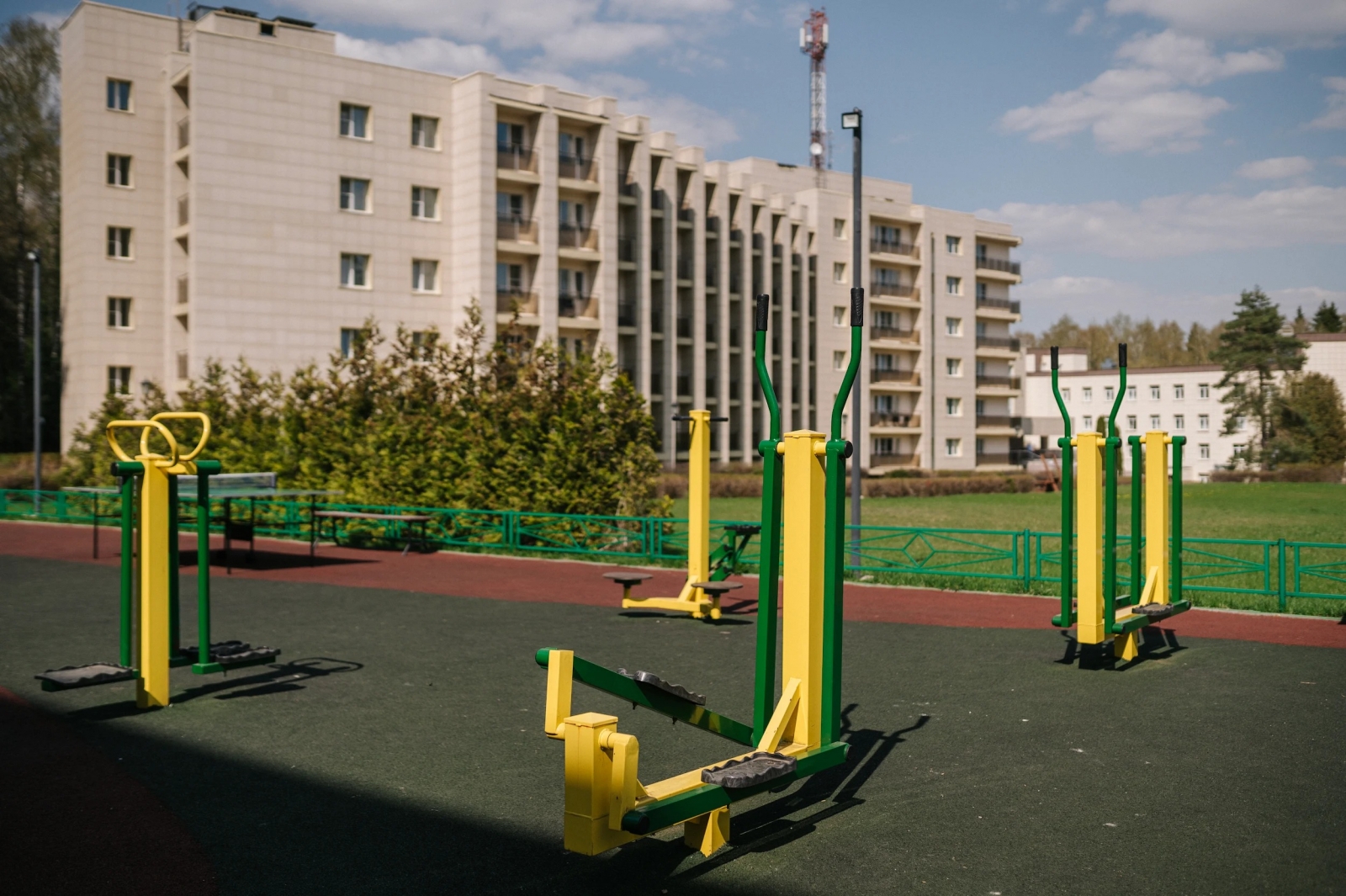 Комфортно разместиться можно в номерах. Единовременный прием — не более 180 человек. Питание организовано по системе «шведский стол». В санатории также расположены: бассейн с 4 дорожками, джакузи с водопадом, тренажерный зал и пространство для занятий по аэробике, гимнастике, танцам, йоге, пилатесу, стретчинга.