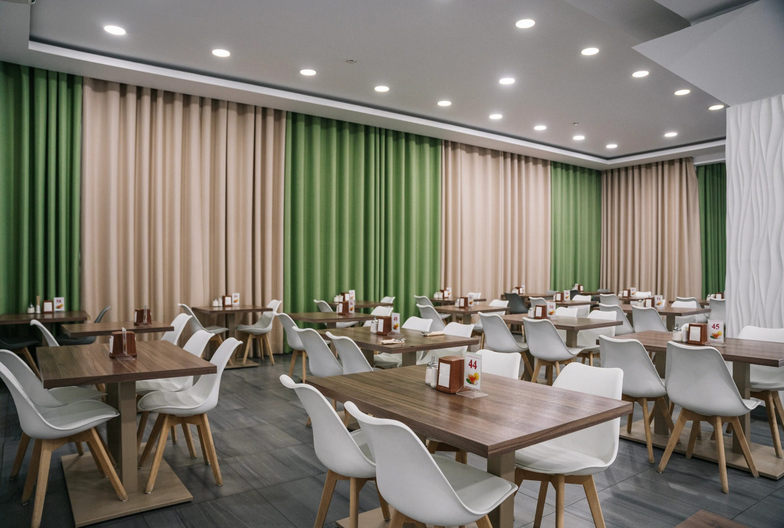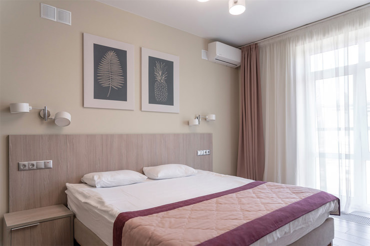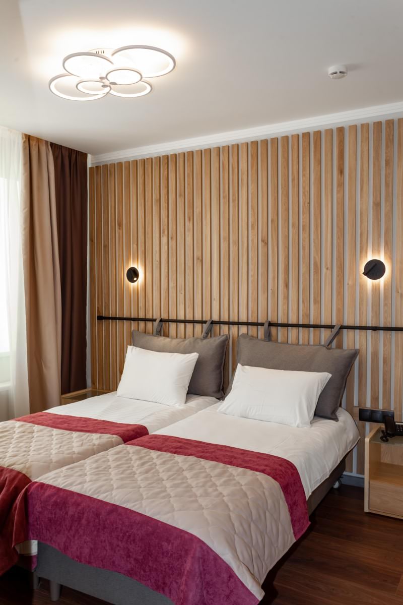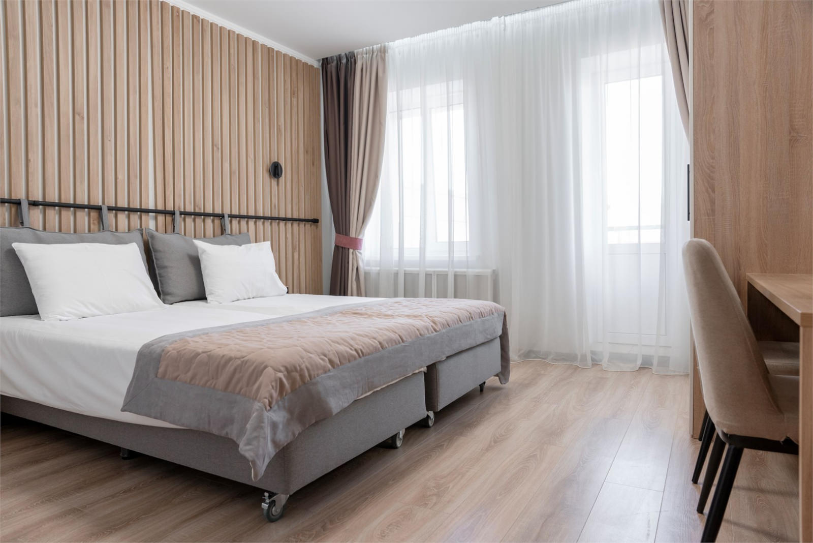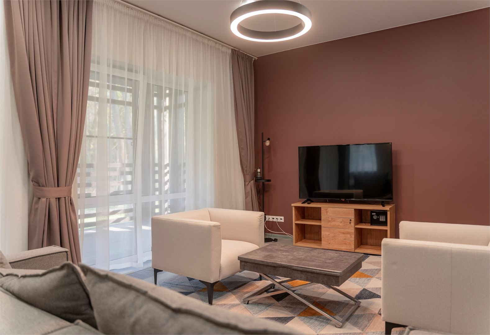 Комфортно разместиться можно в номерах. Единовременный прием — не более 180 человек. Питание организовано по системе «шведский стол». В санатории также расположены: бассейн с 4 дорожками, джакузи с водопадом, тренажерный зал и пространство для занятий по аэробике, гимнастике, танцам, йоге, пилатесу, стретчинга.